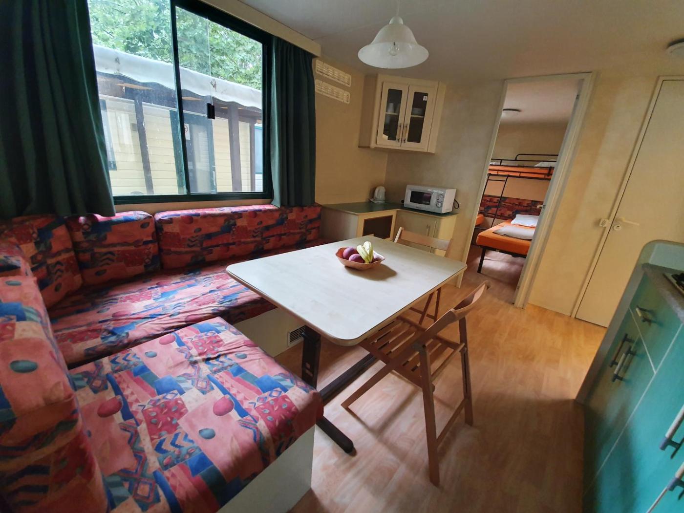 Mobile Home. Boasting a private entrance, this air-conditioned mobile home includes 1 living room, 2 separate bedrooms and 1 bathroom with a shower. Guests will find a stovetop, a refrigerator, kitchenware and a microwave in the kitchen. The mobile home also features a barbecue. The mobile home offers a coffee machine, a seating area, a dining area as well as a terrace with garden views. The unit has 5 beds. ;