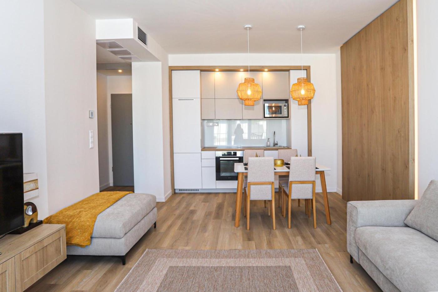 One-Bedroom Apartment. Boasting a private entrance, this air-conditioned apartment includes 1 living room, 1 separate bedroom and 1 bathroom with a shower and a hairdryer. In the well-fitted kitchen, guests will find a stovetop, a refrigerator, a dishwasher and kitchenware. Featuring a terrace with lake views, this apartment also offers soundproof walls and a flat-screen TV with cable channels. The unit has 2 beds. ;