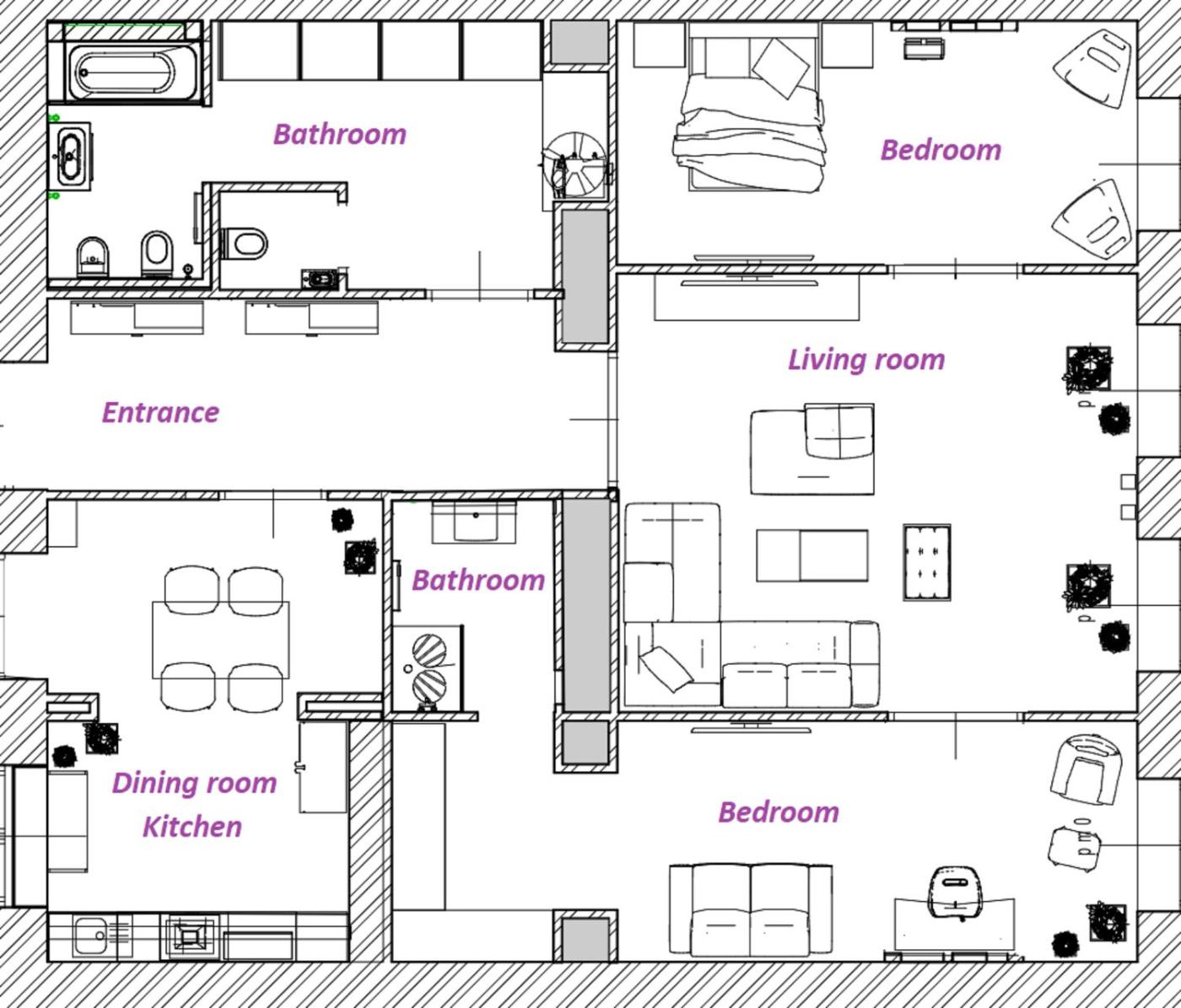 Two-Bedroom Apartment. Boasting a private entrance, this air-conditioned apartment includes 1 living room, 2 separate bedrooms and 2 bathrooms with a bath and a shower. In the well-fitted kitchen, guests will find a refrigerator, a dishwasher, kitchenware and a microwave. The spacious apartment offers a washing machine, a tea and coffee maker, a seating area, a dining area and a flat-screen TV with satellite channels. The unit has 3 beds.