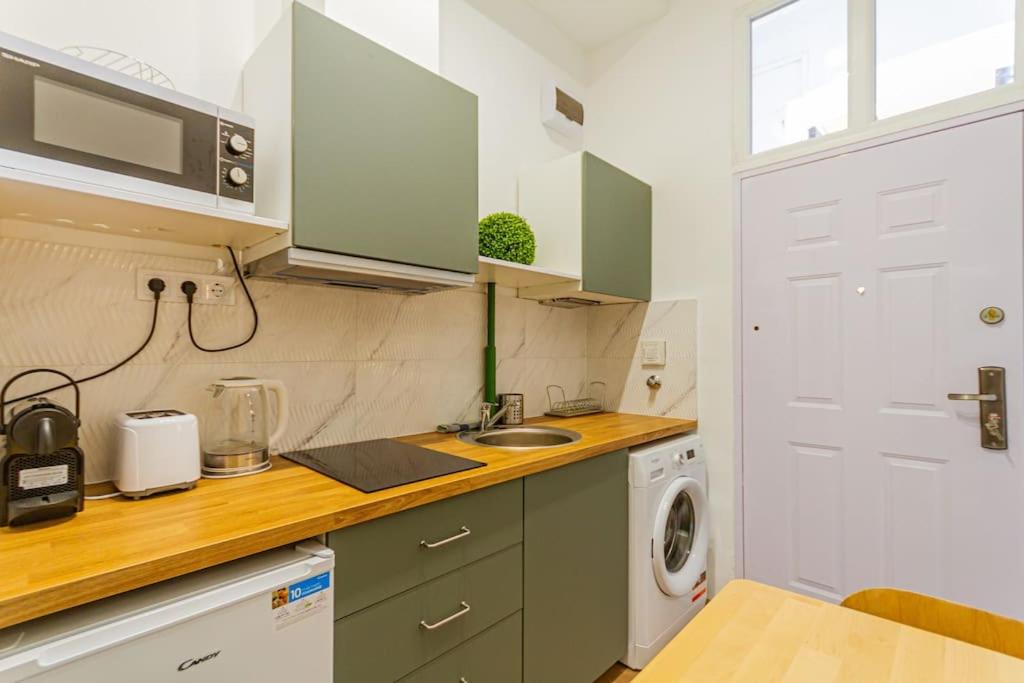 One-Bedroom Apartment. The air-conditioned apartment has 1 bedroom, 1 bathroom with a hairdryer and a kitchen. Meals can be prepared in the kitchen, which features a stovetop, a refrigerator, a microwave and a tea and coffee maker. The apartment features a washing machine and heating. The unit has 2 beds.