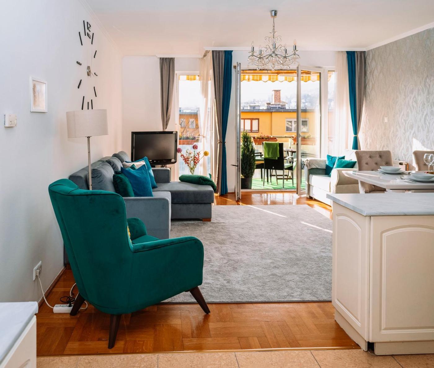 Deluxe Apartment. Featuring a private entrance, this air-conditioned apartment consists of 1 living room, 1 separate bedroom and 1 bathroom with a bath and a shower. In the well-equipped kitchen, guests will find a stovetop, a refrigerator, a dishwasher and kitchenware. The spacious apartment provides a washing machine, a tea and coffee maker, a seating area, a flat-screen TV with cable channels, as well as mountain views. The unit offers 2 beds.