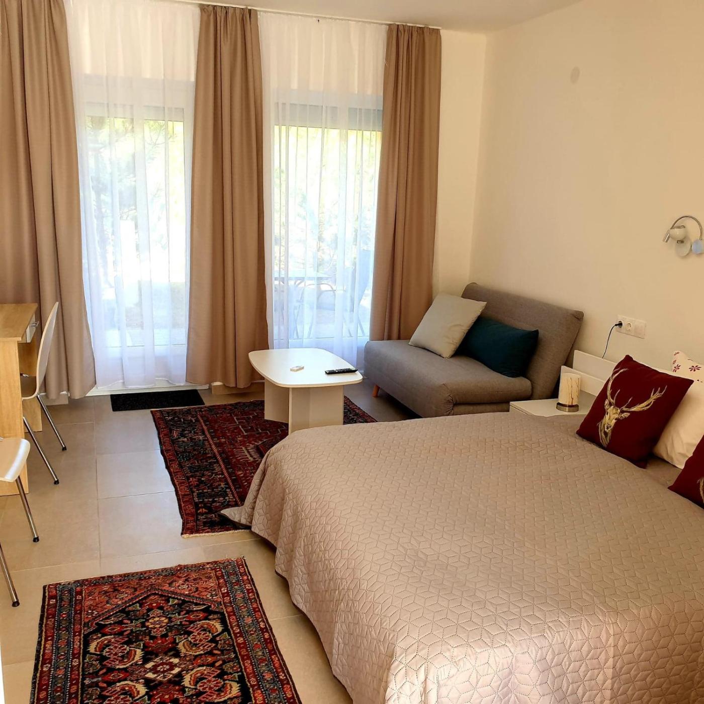 Five spacious, bright Dália apartment rooms and three separate cottages, Liliom, Hortenzia and Magnólia, each with their own terrace and garden access,you can enjoy your morning coffee or an evening chat in the fresh air, overlooking the forest or the park.