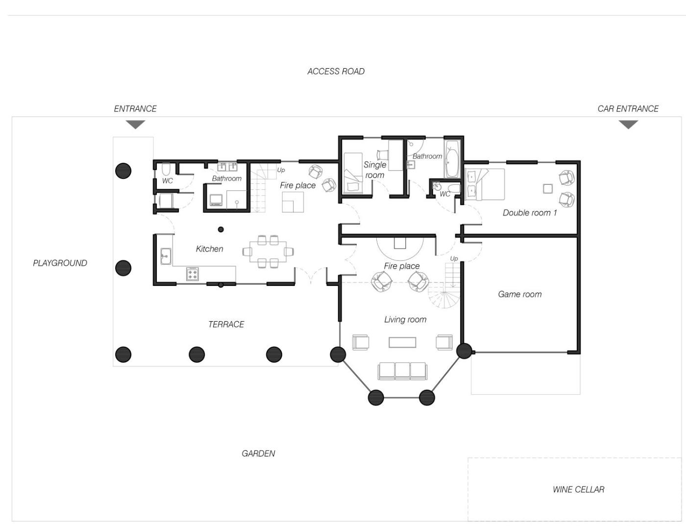The air-conditioned guest house consists of 5 bedrooms, a living room, a fully equipped kitchen with a dishwasher and a coffee machine, and 2 bathrooms with a shower and a hair dryer. Towels and bed linen are offered in the guest house. There is also a seating area and a fireplace.